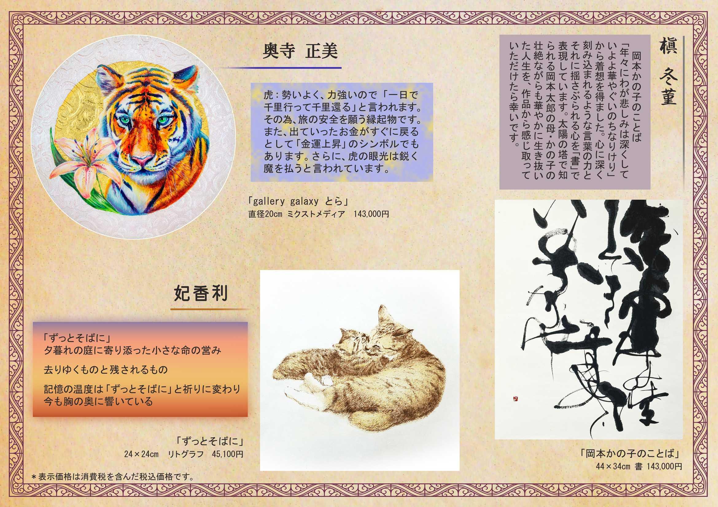 After returning to Japan, she has been presenting her works mainly as a freelance artist at department stores and galleries, and has built up a nationwide fan base.